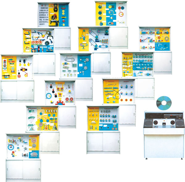 《機(jī)械設(shè)計(jì)基礎(chǔ)》示教陳列柜是根據(jù)教育部高職高專規(guī)劃教材設(shè)計(jì)的電化教學(xué)設(shè)備。本陳列柜共分十三個(gè)柜和一個(gè)電腦控制臺(tái),并配有一臺(tái)功率放大器,VCD機(jī)和激光片,聲控同步演示,采用單獨(dú)驅(qū)動(dòng)由電子設(shè)備控制演示,可由VCD控制順序自動(dòng)運(yùn)行講解;又能根據(jù)教材,教學(xué)需要而遙控任意選擇進(jìn)行單獨(dú)演示。模型材料采用進(jìn)口有機(jī)板和硬聚氯;板面附有必要的圖表和文字說明,演示形象逼真,運(yùn)行可靠,制作工藝美觀,使用本陳列柜可提高教學(xué)效果,節(jié)約學(xué)時(shí),是一套現(xiàn)代機(jī)化械課程教學(xué)應(yīng)用實(shí)驗(yàn)設(shè)備。