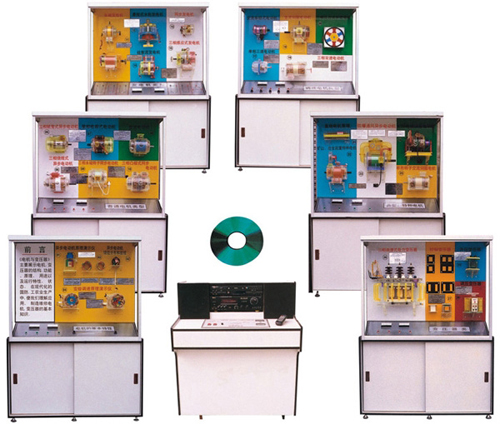 電機(jī)與變壓器示教陳列柜是根據(jù)大、中專院校,按《電力學(xué)》、《電力拖動(dòng)》、電機(jī)控制》、《電機(jī)修理》等教材設(shè)計(jì)一套電化設(shè)備,品種多,功能齊全,學(xué)生可根據(jù)教材需要觀察、分析,大大提高分析電機(jī)原理的能力,本陳列柜共分6柜及一臺(tái)電腦解說(shuō)控制臺(tái)。有第一代和第二代兩種形式。