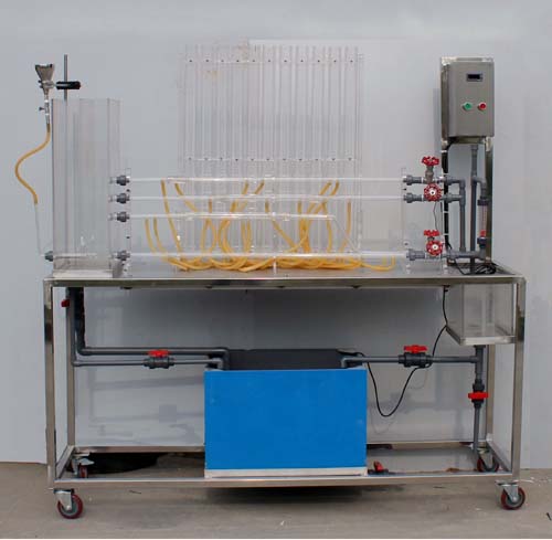 雷諾實驗管、柏努利實驗管、沿程阻力管、局部阻力管、水泵、秒表、測壓計、文丘里流量計、實驗水箱、計量水箱、蓄水箱、指示液盒、不銹鋼框架。