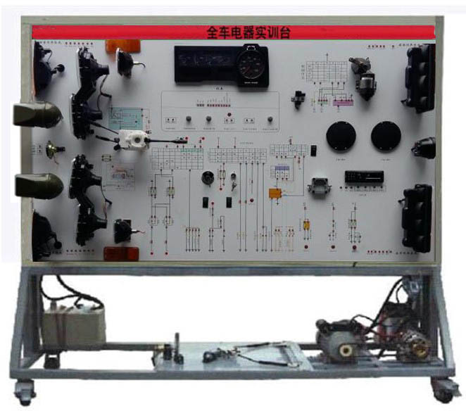 2.設(shè)備面板采用耐創(chuàng)擊、耐污染、防火、防潮的高級(jí)鋁塑板,表面經(jīng)特殊工藝噴涂底漆處理;面板打印有彩色電路圖;學(xué)員可直觀對(duì)照電路圖和實(shí)物,認(rèn)識(shí)和分析汽車整車電器各系統(tǒng)的工作原理。