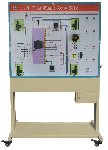 本產(chǎn)品選用汽車中控與防盜系統(tǒng)實(shí)物,展示汽車中控與防盜系統(tǒng)的結(jié)構(gòu)與原理;面板上繪有完整的中控與防盜系統(tǒng)的電路圖,設(shè)置有檢測端子,可通過儀器儀表檢測各種信號參數(shù)如電壓、電阻、頻率等。